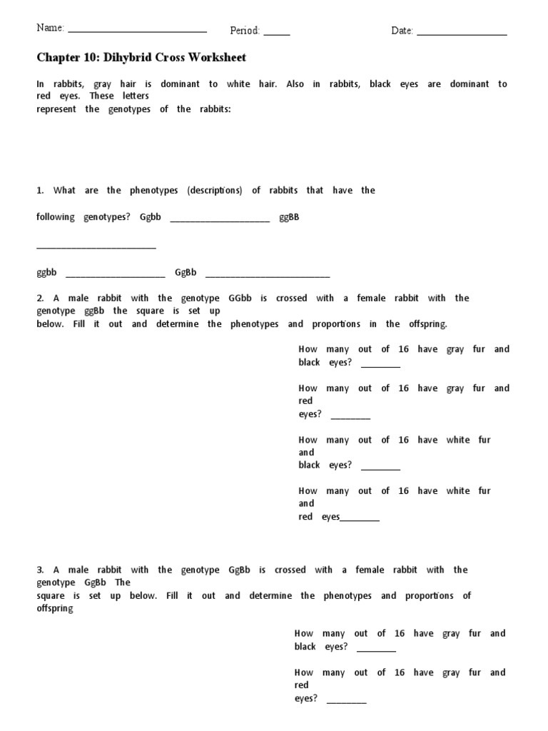 Chapter 10 dihybrid cross worksheet & more fillable forms, register and subscribe now! 5 star rated · paperless workflow · free mobile app Do you know chapter 10 dihybrid cross worksheet pdf is one of the hottest topics on this category? Also in rabbits, black eyes are dominant to red eyes. What are the phenotypes (descriptions) of rabbits that have the following genotypes?